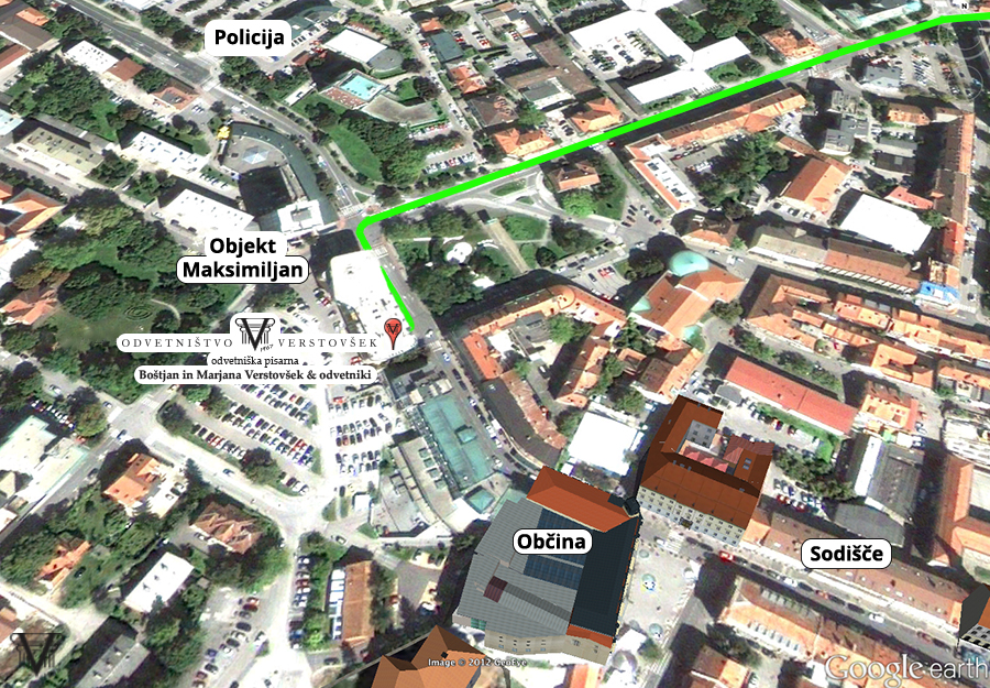 Nahajamo se na naslovu Ljubljanska 5a, Celje, v objektu “Maksimiljan”, ki je oddaljen cca. 150 m od policijske postaje proti centru, oz. cca 50 m od mestne občine in 100 m od sodišča.